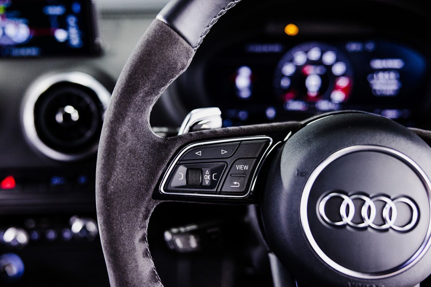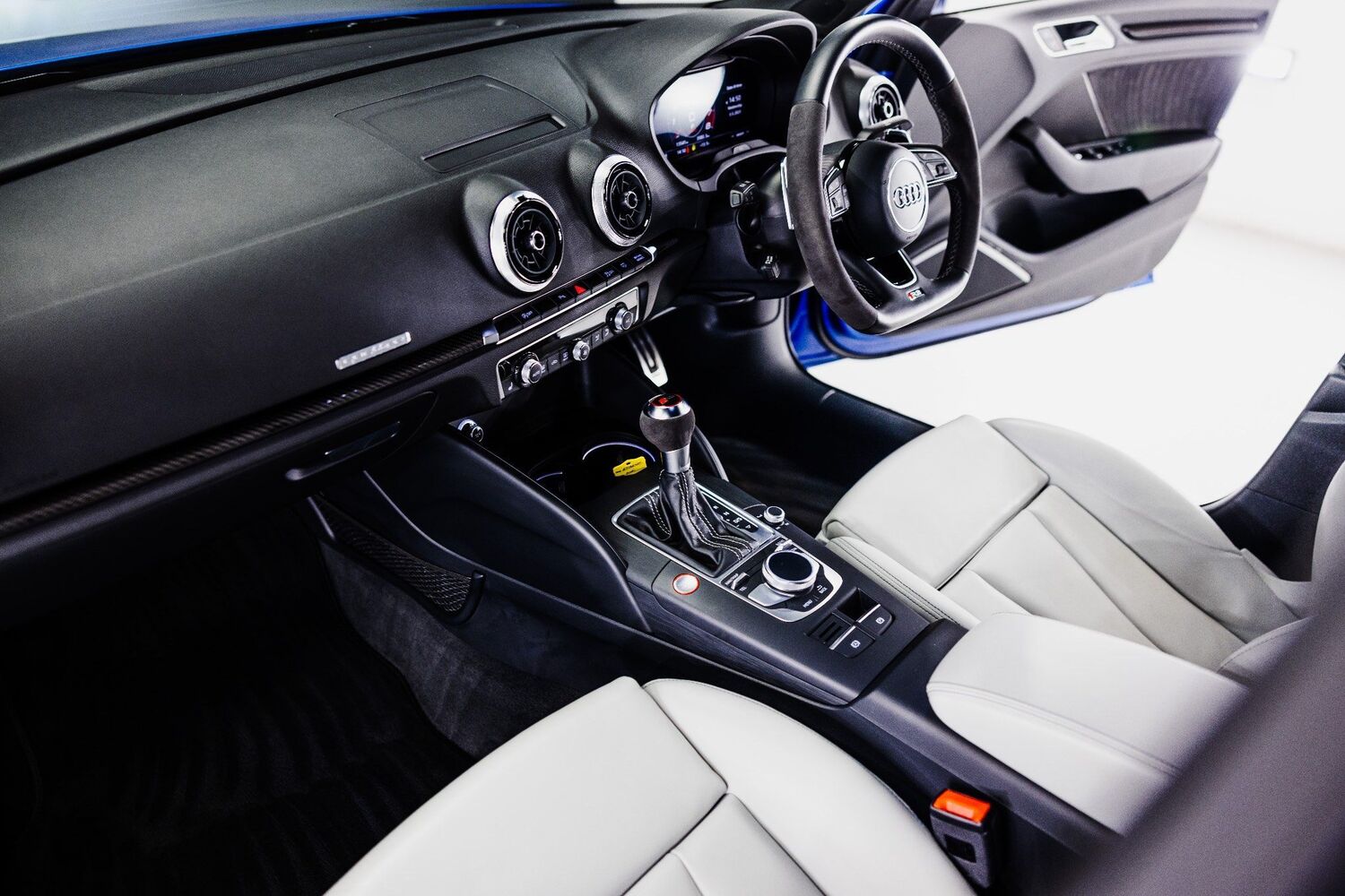 19in Alloy Wheels - 5-Arm Rotor Design, 2 x USB Charging Ports and 1 x AUX-IN, 6-Airbag System with Knee Airbag for Driver, Aluminium Interior Elements, Anti Theft Locking Wheel Bolts, Anti-Theft Alarm, Audi Beam, Audi Connect Infotainment Services - 36 Month Subscription, Audi Drive Select, Audi Hill Hold Assist, Audi Parking System Plus, Audi Smartphone Interface, Audi Sound System, Audi Virtual Cockpit with RS Specific Display, Auto-Dimming Rear-View Mirror with Light and Rain Sensor, Bluetooth Interface, Brake Calipers Painted in Black with RS Logo at the Front, CD Drive, Cruise Control, DAB Digital Radio, Door Mirrors - Electrically Adjustable and Heated with Integrated LED Side Indicators, Dual-Zone Electronic Climate Control, ESC - Electronic Stabilisation Control inc ABS - ASR and EDL, Electric Windows - Front and Rear, Electromechanical Parking Brake, First Aid Kit and Warning Triangle, Front Centre Armrest, Front and Rear Floor Mats, Headlights Washers, Heated Front Seats, ISOFIX Child Seat Mounting and Top Tether, Illuminated Door Sill Trims with RS Logo, Inlays - Optic 3D Design - Titanium Grey, Interior Light Package, LED Headlights with LED Rear Lights and Dynamic Rear Indicators, MMI Navigation Plus including MMI Touch, Manual Seat Adjustment, Matt Aluminium Look Door Mirrors, Matt Aluminium Look Window Trims, Pedals - Brushed Stainless Steel, Progressive Steering, RS Body Styling, RS Brake System, RS Dual-branch Exhaust System with Two Oval Tailpipe Trims, RS Flat Bottomed 3 Spoke Leather Multi-function Sport Steering Wheel with Alcantara Inserts and Gear Shift Paddles in Aluminium Look - Contrast Stitching and RS Badging, RS Gear Lever Knob in Alcantara with Leather Gaiter with Contrast Stitching, RS Roof Edge Spoiler, RS Sports Suspension, RS3 Badge on Grille and on Luggage Compartment Lid, Remote Central Locking with 2 Fold Away Keys, Seat Belt Monitoring, Seats - Split Folding Rear - 60-40, Storage Package, Tool Kit and Car Jack, Tyre Pressure Warning Light, Tyre Repair Kit, Voice Control