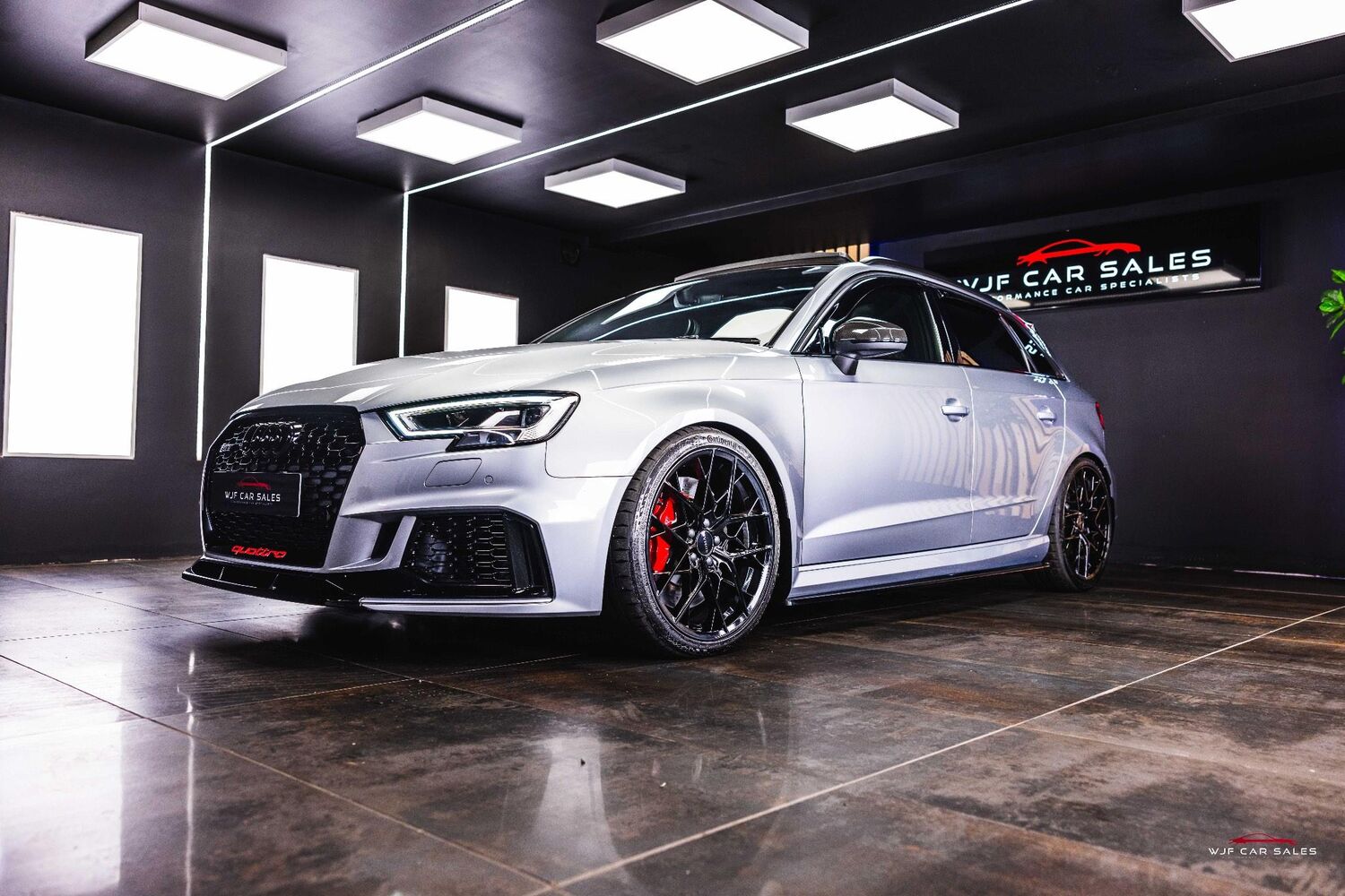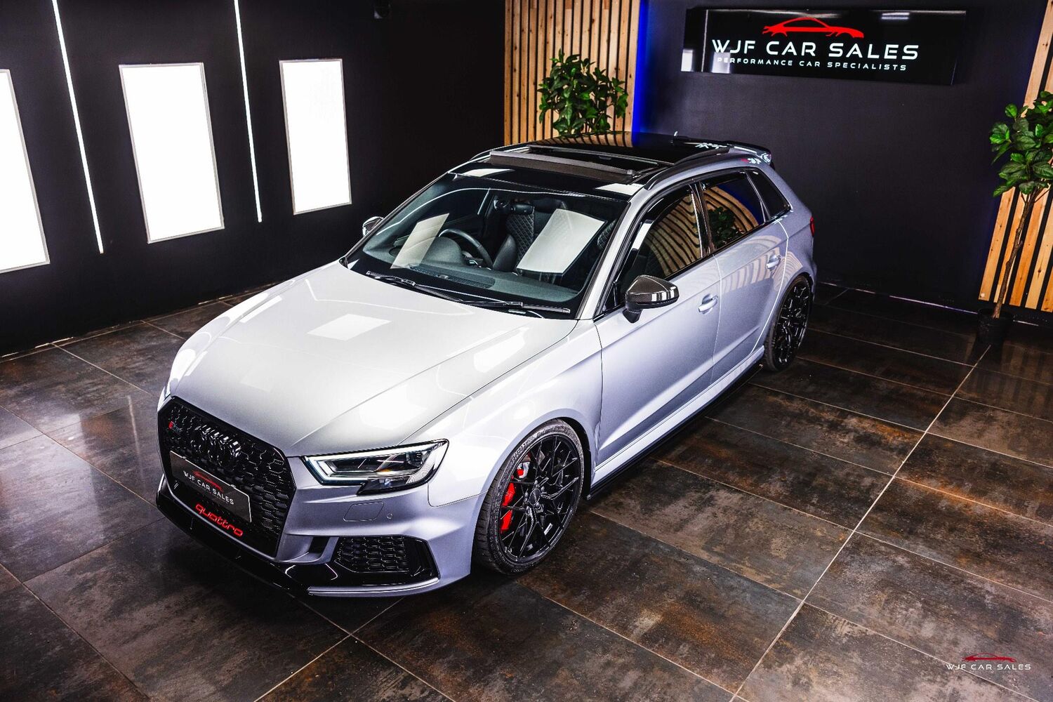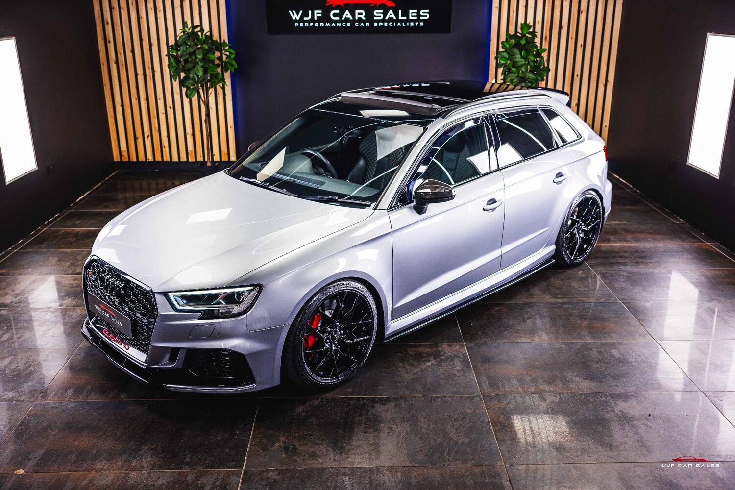 Rear-View Camera, Tyre Pressure Monitoring System, Audi Sport Pack, Black Roof Rails, Brake Calipers Painted in Red with RS Logo at the Front, Door Mirrors - Heated-Electrically Adjustable-Folding-Auto-Dimming, Panoramic Glass Sunroof, Privacy Glass, RS Sports Exhaust System, Styling Package - High-Gloss Black, Comfort and Sound Package, Electrically Adjustable 4-Way Lumbar Support, Inlays - Carbon, Fine Nappa Leather with Diamond Quilting - RS Super Sports Seats - Black/Rock Grey Stitching RS3 Logo, Matrix LED Headlights with LED Rear Lights and Dynamic Front and Rear Indicators, Audi Magnetic Ride with RS Sport Suspension, Top Speed Restriction Increase to 174mph, 19in Alloy Wheels - 5-Arm Rotor Design - Gloss Anthracite Black - Diamond Cut Finish