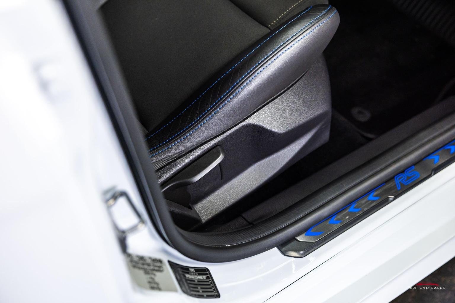 19in Alloy Wheels - Multi Spoke - Painted Silver Finish, 4 Preset Drive Modes - Normal - Sport - Track - Drift, Additional Binaccle Mounted Gauges - Boost Pressure - Oil Temperature and Oil Pressure, Airbags - Driver and Front Passenger, Airbags - Front Side Impact, Airbags - Front and Rear Side Curtain, Alloy Foot Pedals, Anti-Lock Braking System - ABS and Electronic Stability Control - ESC with Traction Control and Hill Start Assist, Automatic Dimming Rear View Mirror, Automatic Headlights, Bi-Xenon Headlights with Adaptive Lighting, Centre Console - Premium with Sliding Armrest - Covered Stowage Bins, Courtesy Lights - Ambient LED Courtesy Lighting - Single Colour, DEATC - Dual-Zone Electronic Automatic Temperature Control, Door Mirrors - Heated - Electric - Integrated Side Indicators - Body Coloured, Dual Mode Damper Settings, Dynamic Torque Vectoring, EPAS - Electric Power Assisted Steering, Ford Easy-Fuel Capless Refuelling System, Ford Power Starter Button, Front and Rear Bumper - Body Colour - Unique RS Design, Front and Rear Floor Mats, Gearshift Knob - RS Unique Leather Trimmed, Headlights - Jet Wash, Hill Start Assist, IPS - Intelligent Protection System, LED Daytime Running Lights, Launch Control, Lightweight Brembo Four-piston Monoblock Calipers, Locking Wheel Nuts, MyKey, Performance Shift Light, Quickclear Heated Front Windscreen with Heated Washer Jets, RS Branded Recaro Front Seats with Leather Side Bolsters, RS Flat Bottom Steering Wheel - 3-Spoke Leather Trimmed with RS Logo, RS Front Door Scuff Plates, RS Instrument Cluster Binnacle, Rain Sensitive Windshield Wipers, Rear Centrally Located LED Fog Light, Rear View Camera, SYNC3 Navigation with 8in Touchscreen DAB Audio System, Sculptured 3 Rear Seats - 60-40 Split Back, Ten Sony Audio Speakers Including Subwoofer, Thatcham Category 1 Alarm, Twin High-Performance Exhaust Pipes, Tyre Pressure Monitoring System, Tyre Repair Kit, Unique RS Performance Rear Spoiler, Windows - Electrically Operated Front and Rear with One Touch Lowering-Closing and Global Closing