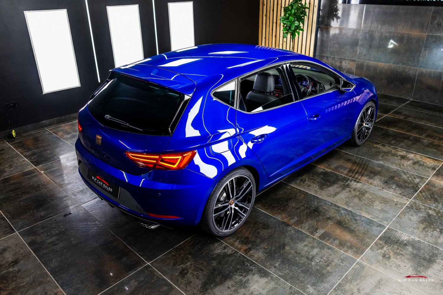 12V Power Supply in Centre Console, 19in Alloy Wheels - CUPRA Machined, 7 Airbags, ABS and Traction Control System - TCS - Electronic Stability Control - ESC - and Electronic Differential Lock System - XDS, Adaptive Cruise Control - ACC, Alarm - Volumetric, Armrest - Front with Storage Compartment, Black Interior Roof Lining, Boot Storage Net, Brake Callipers - Black, Bumpers - Exclusive Cupra Front and Rear, Cargo Rings in the Boot, Convenience Pack Plus, Dark Tinted Rear Windows, Digital Clock, Digital Cockpit, Driver and Passenger Seat Height Adjustment, Driver and Passenger Sunvisor with Covered and Illuminated Mirrors, Drivers Seat Lumbar Adjustment, Dual Zone Climate Control, ESC - Electronic Stability Control and Tyre Pressure Warning Light Indicator, ESC Switch-Off Key, Electric Parking Brake Including Autohold Function, Electrically Adjustable Driver Seat, Electrically Adjustable and Heated Door Mirrors, Electrically Foldable Exterior Mirrors with Parking Position and Passenger-Side Mirror with Lowering, Electro-Mechanical Progressive Power Steering, Emergency Tyre Repair Kit, Flat Bottomed-Perforated Leather Steering Wheel with White Stitching and CUPRA Logo, Front Assist with Pedestrian Protection, Front Seat Back Storage Pockets, Front and Rear Electric Windows, Front and Rear Parking Sensors, Full LED Headlights, Gearshift Indicator, Gloss Black Door Mirrors with Integrated LED Indicators, Hill Hold Control, ISOFIX Points in Outer Rear Seats with Top Tether Anchorage Points, Illuminated Aluminium Front Door Sill with CUPRA Logo, Instrument Lighting with Brightness Control, Interior CUPRA - Black, Interior Detailing - Black, Keyless Entry and Go - KESSY and Wireless Phone Charger, LED Interior Illumination Pack, Lights Left On Warning Buzzer, Low Fuel Warning Light, Lower Suspension - 15mm, Mechanical Limited Slip Differential, Media System Plus, Multi Coloured Ambient Lighting, Multi-Collision Braking System, Navigation System, Outside Temperature Gauge, Pedals in Aluminium, RPM Counter, Radiator Grille Frame in Glossy Black, Radiator Grille in Black, Remote Central Locking with Deadlocks, SEAT Drive Profile, SEAT Full Link Smartphone Integration - Mirror Link - Apple CarPlay - Google Android Auto, Seatbelt Reminder - Front, Seats - Passenger Lumbar Adjustment, Space-Saving Spare Wheel, Split Folding Rear Seats 60-40 with Armrest, Steering Wheel-Mounted Gearshift Paddles, Trip Computer, Two Folding Keys with Window Open-Close - Door and Boot Opening Functionality, Two Height-Adjustable Front and Rear Headrests, USB Cable for Apple and Android Compatibility, Visual Dual Exhaust Pipes, Winter Pack